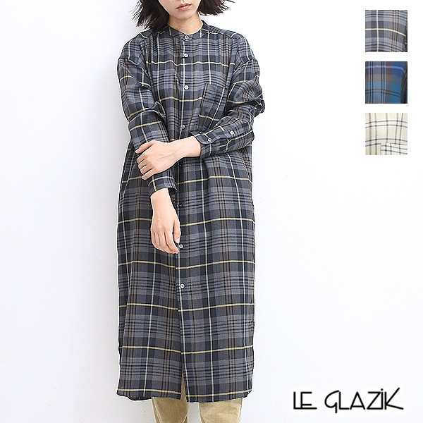 Le Glazik ル グラジック P Wチェックノーカラーシャツワンピース Jl 3725yun レディース 送料無料 Brand List L Le Glazik シーガルディレクション オンラインストア